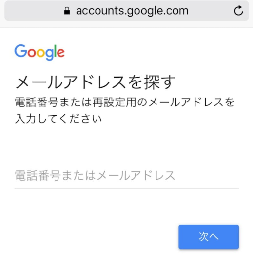 Step1:「アカウントの復旧」(accounts.google.com)をクリックします。